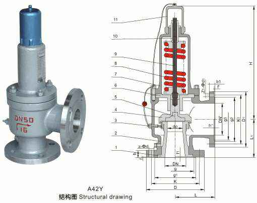 全启封闭式安全阀的作用:全启封闭式安全阀适用于工作温度≤300℃的空气、石油气等介质的设备和管路上; A42Y-16P~40P型适用于工作温度≤200℃有腐蚀性的气体介质的设备和管路上;作为超压保妒装置,当设备和管路内压力超过允许值时,阀门自动开启,继而全量排放:当压力降低到规定值时,阀门自动关闭,保证设备和管路的安全运行。