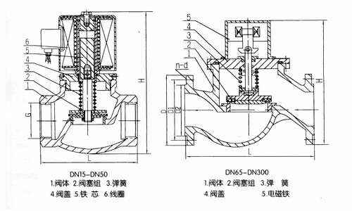 本阀系一次开阀的直动式低压电磁阀。控制介质通断的阀口密封垫,通过阀杆直接与活动铁芯相连。